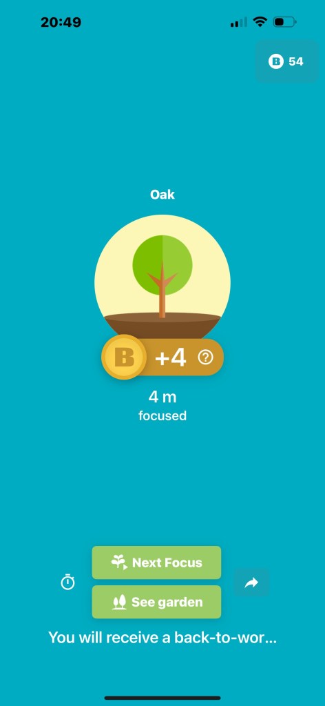 Flora! It’s the free version of forest. It may not be as fancy but you can set a focus timer which is helpful to stay off your phone! As you relax on the timer (minimum of five minutes) Your tree grows! As the timer goes on it shows helpful quotes, has an assisted breathing help icon, and even allows you to take pictures of your ‘milestones’ reached throughout the timer! The app also functions as a mini to-do list! Time to put up the random un-named notes in the notes app and time to use Flora’s colorful to-do list options!