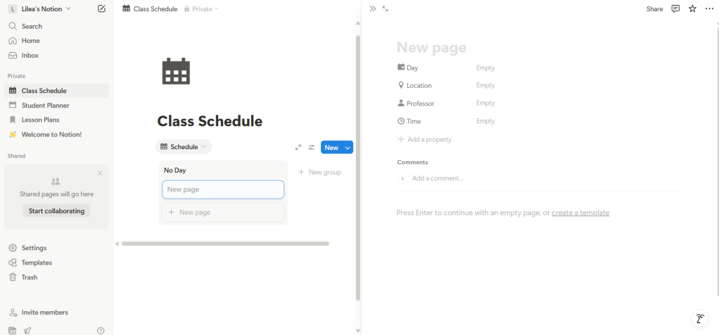 So in the past few days I’ve been looking around at sites to use for college. The best one so far HAS to be notion. I can add my class, weekly, even daily schedules and make them all aesthetically pleasing to me!!!